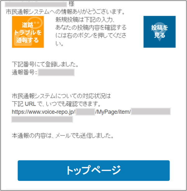 本システムからメールで投稿ページの URL が届きますので、記載されている URL をタップ(クリック)して投稿ページにアクセスします。なお、一部のフリーメールでは迷惑メールフォルダに仕分けられる場合もありますのでご確認ください。